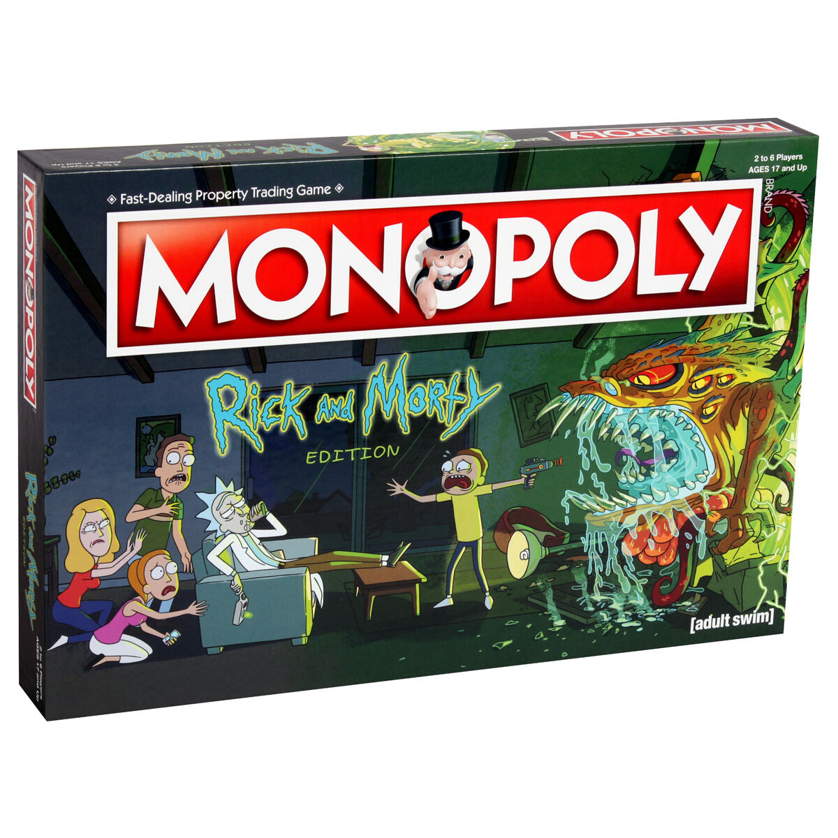 Wubalubadubdub it’s the Rick and Morty edition of Monopoly. Join Rick, Morty and the Smiths as you gallivant your way to victory. Buy, sell and trade locations from the Multiverse including the Cromulon Dimension, Gazorpazorp and Planet Squanch - not to mention a few places from your own Earth realm! Featuring 6 collectible tokens, Flooble Cranks, Gooble Boxes, and more. It’s Monopoly with a Rick and Morty twist!